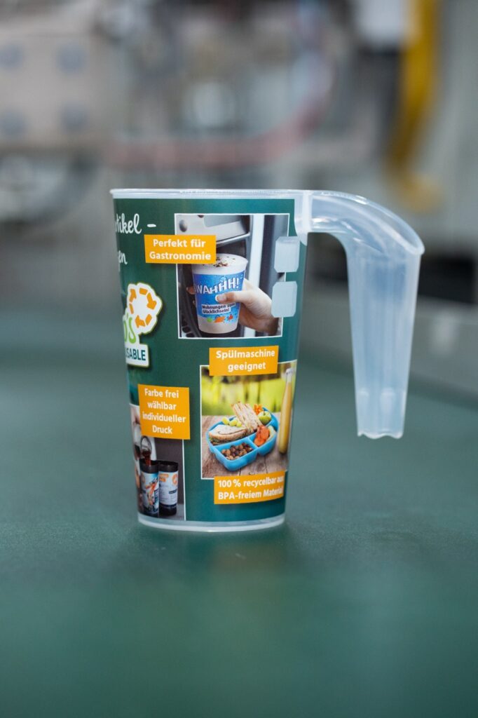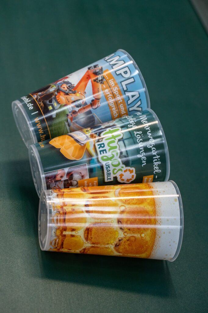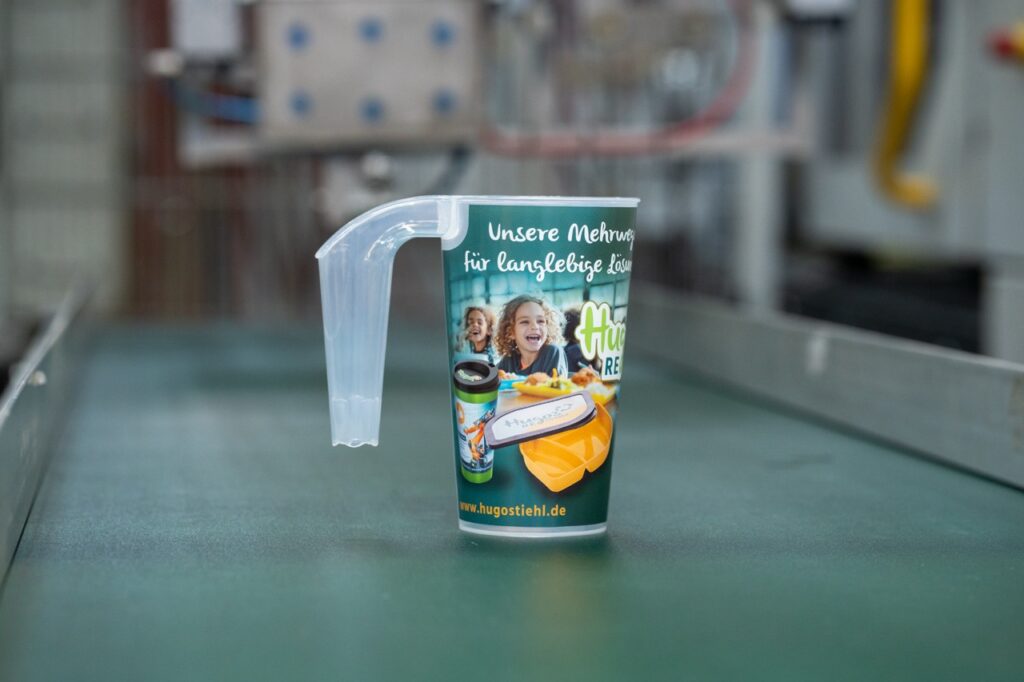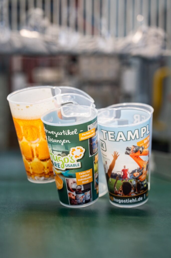 Die Becher sind aus BPA freiem Material gefertigt, zu einhundert Prozent recycelbar, spülmaschinengeeignet und auf eine lange Nutzung ausgelegt.